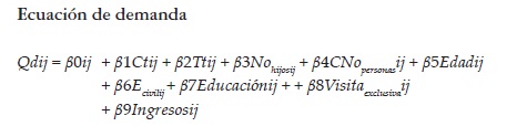Seguidamente se presenta la ecuación de demanda, la cual permitió determinar las variables que determinan el número de visitas a cada una de las playas.
