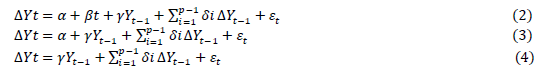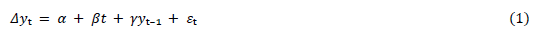 Dickey -Fuller test can be represented mathematically, according to equation 1, below: