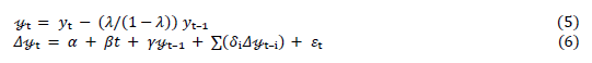 The Dichey-Fuller (ADF) test is expressed by the following mathematical equations: