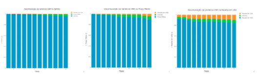 For De Souza (2018), the decomposition of the variance of the forecast error and the impulse response function allows us to assess the relevance of the effects of external shocks on each of the variables in the model. It provides the percentage of the variance of the forecast error of each variable in the different future periods that can be attributed to each external shock.