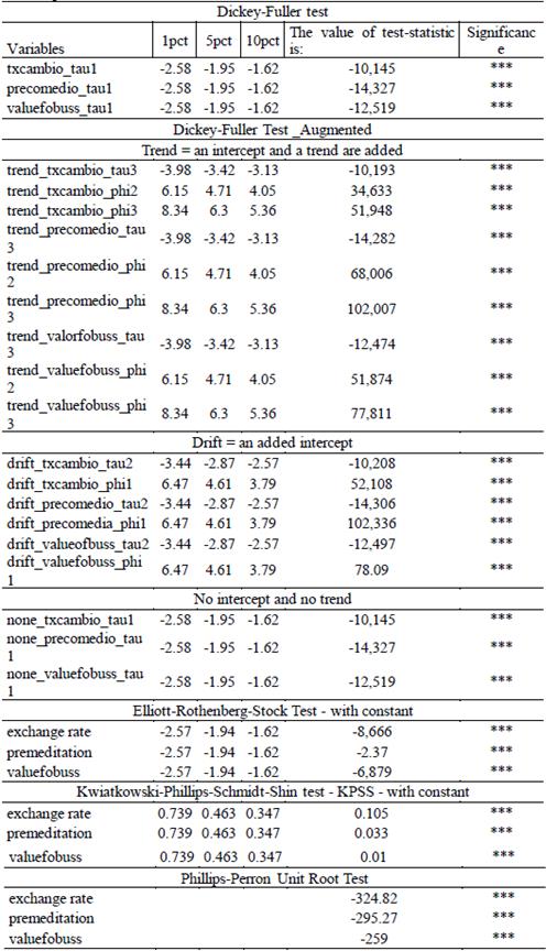 Table 2: Unit Root Tests applied to the series in differences: exchange rate, average