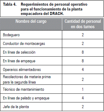 La PE tendrá una capacidad de proceso de 2 t h-1, de tal manera que en una jornada de trabajo de 8 h, la maquinaria procesará 16 t de materia prima de cebolla de bulbo. En dos jornadas de trabajo se procesarán 32 t de cebolla al día, de tal manera que al año la PE estará procesando 9.152 t de cebolla de bulbo. Los sábados solo se trabajará una jornada, y domingos y festivos no se laborará.