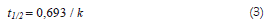 El tiempo de reducción decimal (D) fue estimado con la relación entre k y D acorde a la ecuación: