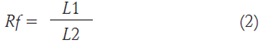 donde L1 es la distancia recorrida por la muestra desde el punto de aplicación hasta el frente del solvente y L2 la distancia del frente del solvente (Nguyen et al., 2009).