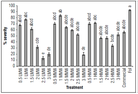 | Chitosan: not infected with Fol59 | 4.8±0.72 b |