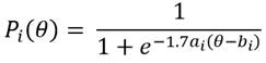 La calibración de los ítems según el ML2p se llevó adelante con IRTPRO 4.2 (Cai, Thissen, & du Toit, 2011). Este modelo postula que la probabilidad P i (θ) de que un individuo con un nivel de rasgo θ elija la opción clave en un ítem dicotómico está en función de los parámetros de localización (b i) y de discriminación (a i ) del ítem. Su formulación viene dada por la expresión: