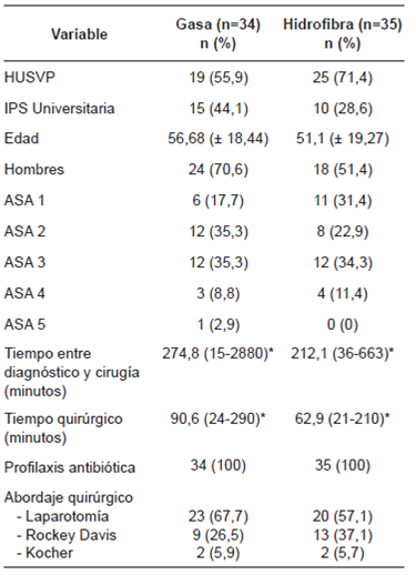 Aquellos pacientes operados en otras instituciones, con procedimientos por laparoscopia, inmunosuprimidos, diabéticos y quienes requirieron material protésico o succión negativa fueron excluidos del estudio.