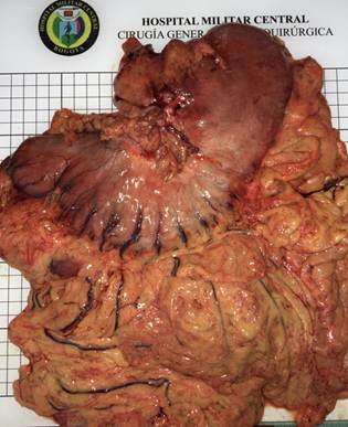 En el periodo de estudio se recolectaron en la base de datos 113 pacientes con adenocarcinoma gástrico que fueron llevados a gastrectomía total (Figura 1), disección ganglionar DII y reconstrucción esofagoyeyunal terminolateral con técnica de Orr + Y de Roux (Figura 2). Se excluyeron del estudio 72 pacientes (63,7 %) con diagnóstico histológico de adenocarcinoma gástrico bien o moderadamente diferenciados. Fueron clasificados histológicamente como adenocarcinoma indiferenciado e incluidos en el estudio 41 pacientes (36,3 %) (Figura 3). La edad promedio de este grupo fue de 56 años, con un rango entre 28 a 92 años. Correspondieron a hombres 30 casos (73 %) y a mujeres 11 (27 %). En relación con el grado de penetración del tumor a través de la pared gástrica, se encontraron los siguientes resultados: T1=1; T2=5; T3=27 y T4=8. Es decir que el 85 % de los pacientes con ACGI (n=35) presentaban tumores localmente avanzados (Tabla1).
