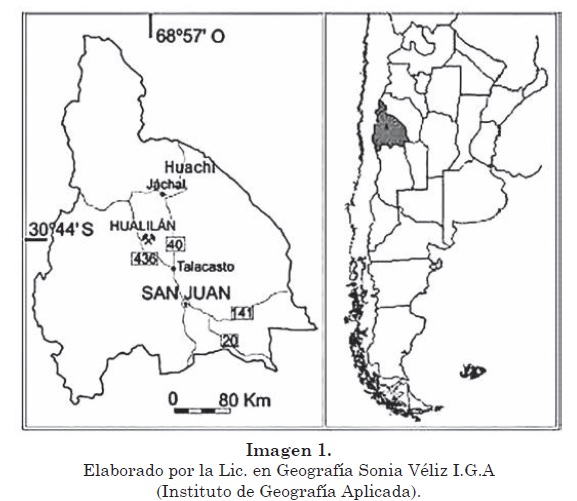El territorio de la actual provincia de San Juan, se emplaza en la ladera oriental del cordón andino; los distintos niveles altimétricos en la orografía diagraman una serie de pisos ecológicos y biogeográficos con una variedad de paisajes de Oeste a Este, con predominio de características de aridez y escasez hídrica14.