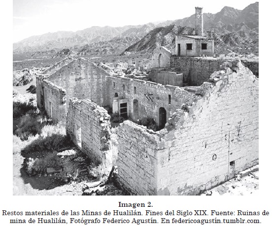 Hasta ahora, la historia local ha aseverado la existencia de centros mineros, basándose en relatos de cronistas e informes elevados a la corona4, pero sin que alcanzaran la relevancia de los principales centros mineros americanos por su difícil extracción y laboreo, y por consiguiente, desestimada su explotación. Solo recién a fines del siglo XIX, en el marco de la implementación de un nuevo modelo económico, bajo el influjo de D. F. Sarmiento se concretaron acciones tendientes a desarrollar esta actividad. Sin embargo, en los archivos de la provincia se preservan documentos referidos a denuncia de minas de fines de la época colonial e inicios de la época patria. Además, en la visita realizada a San Juan por Pérez del Viso en 1796, refiere explotaciones mineras al detallar las cuentas de gastos de Felipe Barboza5, los sitios privilegiados para estos emprendimientos fueron las minas de Huachi y Hualilán6.