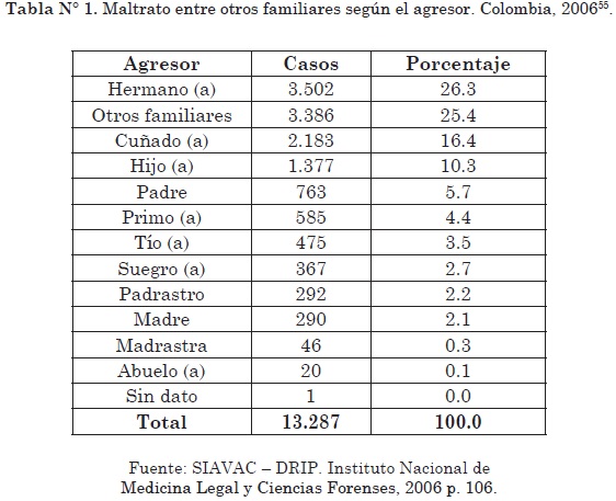 55 Rosa Helena Sierra Fajardo, Neidi Macana Tuta y Clara Ivett Cortés, "Violencia intrafamiliar", Forensis (2006); 106. Disponible en: www.medicinalegal.gov.co.
