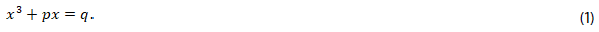 Se proponen a continuación dos situaciones-problemas para resolver la ecuación algebraica de grado 3, relacionadas con la configuración epistémica (CE1.9), que surgen del trabajo de Lagrange (1736-1813) y los aportes de: Omar Khayyam (1050-1133) quien presenta soluciones geométricas utilizando intersecciones de cónicas y muestra la imposibilidad de resolverlas por métodos aritméticos; Scipione Del Ferro (1465-1536) y Gerolamo Cardano (1501-1576), resuelven ecuaciones del tipo (1) y Gauss expone propiedades de los números complejos (Sepúlveda, 2017; 2018).