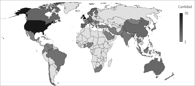 Cantidad de publicaciones por país