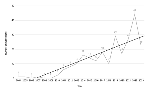 This article presents certain limitations that deserve attention. Notably, the database utilized for information analysis was Scopus. Future research should consider comparisons with other databases such as the Web of Science (WoS) to provide a more comprehensive perspective. Additionally, this study exclusively focused on documents published between 2004 and 2023, which may result in the exclusion of relevant earlier research.