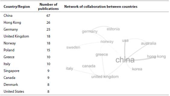 Figure 1 displays the chronological record of publications between 2004 and 2023 available in the Scopus database. Throughout this timeframe, there is an annual growth rate of 22.04%, amassing a total of 238 publications. Remarkably, the last five years stand out, contributing 53.36% of the total publications, although it's crucial to note that the year 2023 includes only the initial months. The surge in publication count is attributable to the significant growth in maritime transportation activities since 2019, in conjunction with global concerns aimed at mitigating factors linked to resource depletion and carbon footprint.