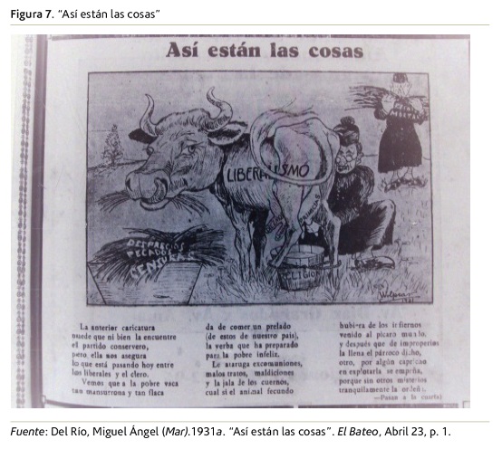 Después de tantos años sin alcanzar el poder, El Bateo esperaba de Olaya un salvador que redimiera al liberalismo y que les pagara a los conservadores con la misma moneda, excluyéndolos del gobierno. En la caricatura "Así están las cosas", en el que se alude al tema del ordeño, tópico común de la caricatura colombiana, el liberalismo no es más que una vaca de la que se nutre la iglesia, pues los liberales, "el pueblo liberal" fue injustamente excluido del poder.