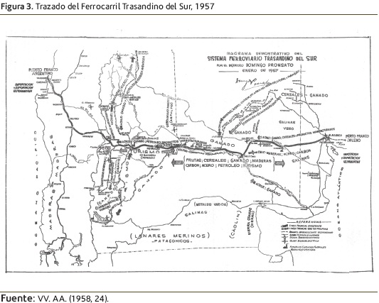 El objetivo fundamental de esta infraestructura trasandina era lograr la articulación de las regiones situadas en las laderas este y oeste de los Andes y la vinculación de los puertos marítimos sobre los océanos Atlántico y Pacífico, que facilitaría las actividades de importación y exportación argentinas y chilenas. Mientras Ortiz consideraba, como hemos visto, que la centralización productiva se había producido en la zona central del litoral atlántico, para Pronsato el desarrollo de un eje económico y social en la región de la norpatagonia había sido deliberadamente postergado e impedido en beneficio de otros centros productores, especialmente aquellos que quedaban ligados por el sistema ferroviario trasandino que unía al puerto de Buenos Aires con la provincia de Mendoza (Pronsato 1952, 48-49 y 54).