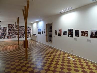 Fotografo: Elkin Rubiano, Granada (Antioquia, Colombia), 2015 N de A: Al fondo el mural de fotografías, a la derecha fotografía documental de talleres y, en la vitrina, algunas bitácoras