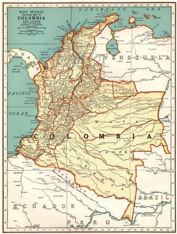 Fuente: 1940 Antique Colombia, Gallery Wall Art Map Collector (Pinterest). https://co.pinterest.com/pin/848084173555455468/
