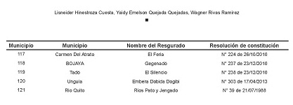 1Cifra presentada por el Instituto Colombiano de Desarrollo Rural INCODER seccional Chocó mediante Oficio 20152147039