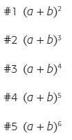 • Proponga una regla para desarrollar binomios de la forma, con natural mayor o igual que 2, explíquela y pruébela con