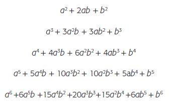 • Considerando que o - b = a + (-b), ¿qué variación haría a su fórmula o procedimiento para desarrollar binomios de la forma (a - b)n, con natural mayor o igual que 2? Explíquela y verifíquela