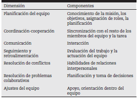 Tabla 1 Dimensiones y componentes de la competencia de trabajo en equipo