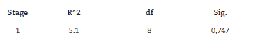 Table 7 shows a significance value greater than 5% for the Hosmer and Lemeshow test. This result, combined with the results of the Cox & Snell and Nagelkerke tests, point to the adequacy of the proposed model.