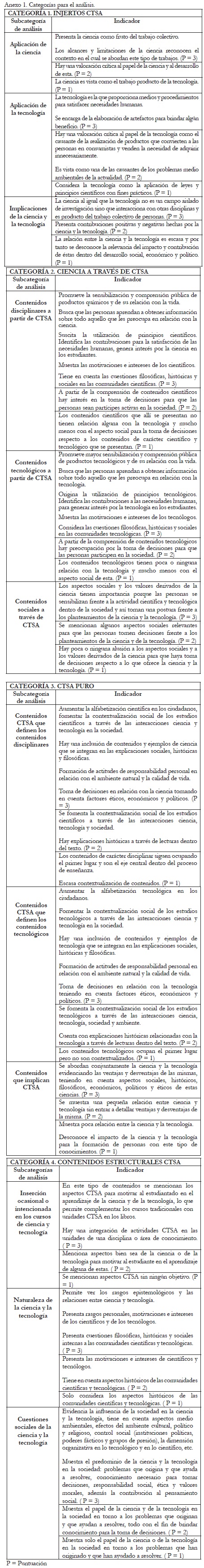 Categoría 3. CTSA pura.Significa encontrar contenidos no de naturaleza disciplinar, sino contenidos definidos y centrados en la relación CTSA. En algunos casos el contenido químico se incluye con el fin de enriquecer la explicación de los contenidos CTSA, en otros se referencian los temas de carácter científico o tecnológico pero sin explicarlos.