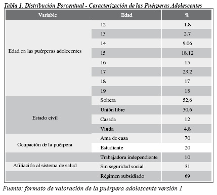 La conducta reproductiva de las adolescentes es un tópico de reconocida importancia, no sólo en lo concerniente a embarazos no deseados y abortos, sino también en relación con las consecuencias sociales, económicas y de salud que conlleva. Los embarazos a muy temprana edad forman parte del patrón cultural de algunas regiones y grupos sociales, generalmente no son deseados y se dan en parejas que no han iniciado una vida en común, configurando así el problema social de la 'madre soltera como lo presentan diferentes autores, entre ellas Carolina Vargas Porras y Luz Mery Hernández Molina, quienes han trabajado además en la validación de un instrumento para evaluar las prácticas de cuidado de estas usuarias (1-2).