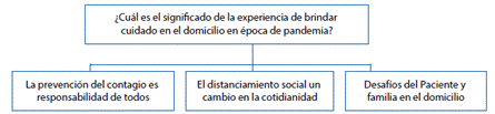 Para obtener una comprensión del significado de la experiencia del personal de enfermería durante el cuidado en atención domiciliaria en tiempos de pandemia se identificaron categorías aportadas por la experiencia. Inicialmente, se identificaron las características generales de los participantes, se encontró que el 94% eran mujeres y el 6% hombres con edades entre los 22 y 38 años que laboran en hospitalización domiciliaria por más de un año. Las tres categorías que emergieron del análisis de los datos fueron las siguientes.