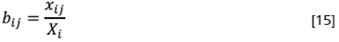 Donde i es la suma de la i-enésima fila de la matriz de distribución, B.
