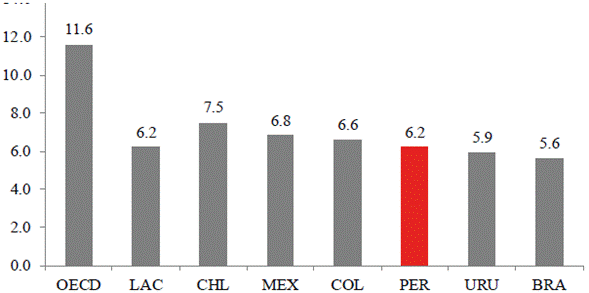 It should be noticed that one of the greatest advantages of the tax-to-GDP ratio is that it is easily obtained and can be used as a reference for comparing taxes among countries, allowing an analysis of the gaps that Peru must close with regard to the other countries.