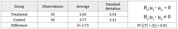 | Control | 3.22 | 0.37 | Pr (|T| > |t|) = 0.00 |