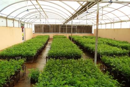 A naturally ventilated polyhouse covered with 200 micron polythene stabilized against UV rays and provided with a fertigation system, plus temperature and humidity controllers, was constructed. Superior mother plants were planted in raised beds filled with pure sterilized sand at 10 × 10 cm spacing. Required fertilizer dosages were pro- vided to the plants through the fertigation system and constant humidity and temperature were maintained. Every month about 3 or 4 juvenile coppice cuttings were obtained from each mother plant. The adequate nutritional status of the mother plants was important in increasing the rooting percentage of cuttings in the misting chamber.