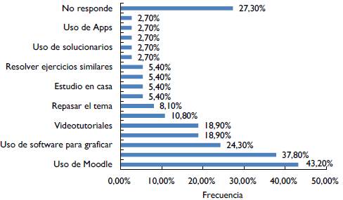 Al profundizar en lo que a la evaluación de las actividades de aprendizaje se refiere, se preguntó a los estudiantes en formato de tipo abierto: ¿qué estrategias llevó a cabo para superar las dificultades que encontró al estudiar el capítulo funciones y sus gráficas?