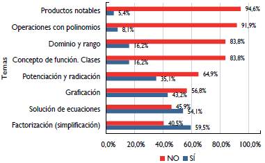 En la fase 3 se diseñó, elaboró y aplicó el instrumento trabajo de campo que tenía el propósito de determinar habilidades de aprendizaje estratégico en los estudiantes durante la propuesta formativa. Al revisar el proceso de planificación (ANTES) de las actividades de aprendizaje que conducirían cada uno de los temas que los estudiantes iban a abordar, se consideró que una característica asociada con el ser aprendiz estratégico es poder visualizar los elementos en el conocimiento que serán soporte para los temas por desarrollar. Por esta razón, se preguntó a los estudiantes en formato tipo abierto: antes de desarrollar el capítulo de funciones y sus gráficas, ¿qué temas cree que son necesarios para abordar estos conceptos?