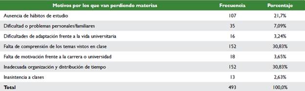 Tabla 1 Principales motivos de reprobación de asignaturas.