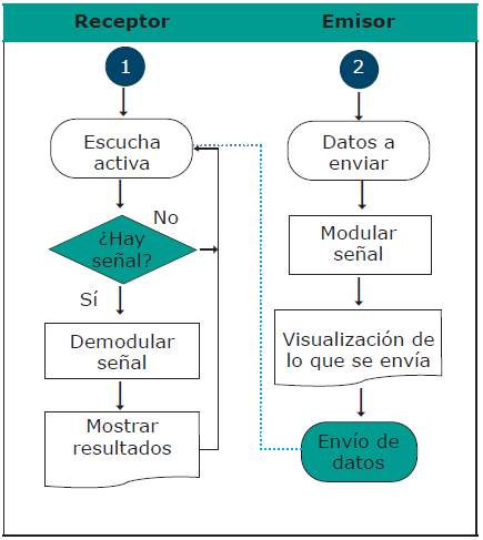 Nota. El flujo representa la forma como se enviaron los datos y los mismos fueron recibidos por el receptor, el cual, siempre está a la escucha de nuevos datos.