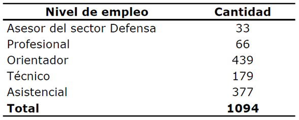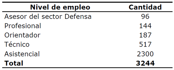 Mediante este decreto se suprimieron dos cargos específicos: el de director de clínica policial y el de jefe de área policial (Decreto 2727 de 2010, art. 2º); y, en cambio, se creó el cargo de asesor del sector Defensa (art. 3º). Igualmente, por medio de este decreto se dispuso que la planta de personal no uniformado de la DISAN para la asistencia en salud correspondía a las siguientes cifras (véase Tabla 3).