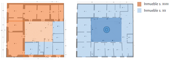 A la izquierda, la construcción del siglo XVIII; a la derecha, el partido arquitectónico definido a principios del siglo XX.
