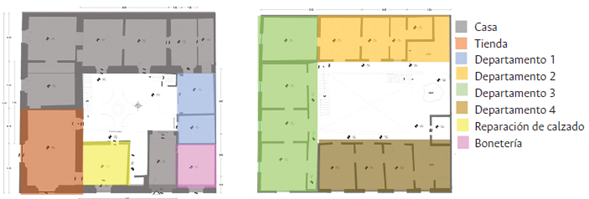 Figura 4 Esquemas de los usos de los espacios del inmueble a mediados del siglo XX