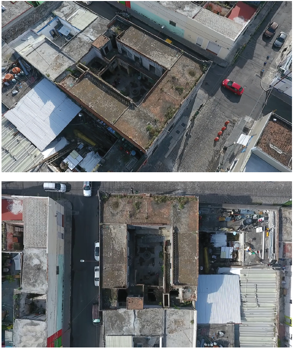 Figuras 9 y 10 Vista general del inmueble Casa Analco, 14 sur 507, con tomas aéreas realizadas con dron