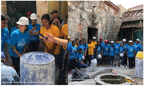 En 2019 se continuó con la promoción de talleres de levantamientos arquitectónicos, así como la elaboración del proyecto ejecutivo de rehabilitación del inmueble y el desarrollo de un planteamiento de Museo Comunitario a partir del involucramiento ciudadano. Además, se dio continuidad a los talleres de procedimientos de construcción en inmuebles antiguos, como albañilería, uso de cal y carpintería. Algunos de ellos como parte del Programa de Voluntarios del Patrimonio Mundial de la Unesco (World Heritage Volunteers), en los veranos de 2018 y 2019 (figura 11).