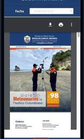 La herramienta cuenta con un boletín informativo del Pacífico colombiano, que puede ser consultado mes a mes. Esta opción se encuentra en el ícono central del menú inferior.