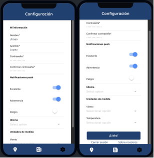 Si se desea actualizar datos de la cuenta, configurar el lenguaje del APP, actualizar las unidades de medida o las notificaciones, se debe seleccionar el icono de rueda dentada en el menú inferior.