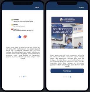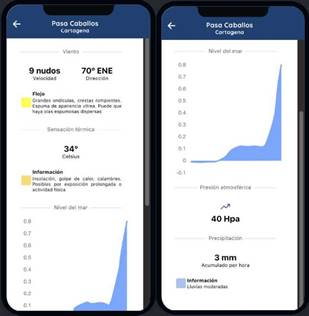 Para aprovechar los datos almacenados, obtenidos con los instrumentos de medición marítimos, se crea una aplicación móvil capaz de admitir e interpretar los valores recibidos y emitir notificaciones. Esto se logra con unas variables de medición y escalas generales, las cuales brindan información descriptiva para los posibles estados en los que puede estar el mar, lo que facilita la toma de decisiones.