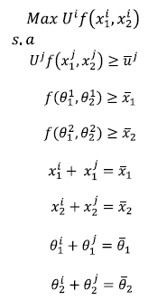 Dichas funciones de producción son continuas, monótonas, cuasi cóncavas, y cumplen con el no free lunch8. Bajo estas condiciones, el problema a resolver en el modelo de equilibrio general es el siguiente: