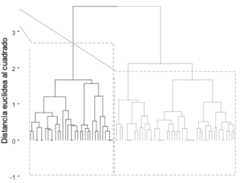 Dada la naturaleza exploratoria de este artículo, se optó por la técnica de agrupación jerárquica que no requiere especificar previamente el número de grupos que se producirán, a diferencia de la agrupación de particiones (Kassambara, 2017) 1. Entre las técnicas de agrupamiento por aglomeración, existe una amplia variedad de medidas de distancia entre objetos para agruparlos en una matriz; esto impide que exista un consenso generalizado sobre cuál método implementar, dejando un amplio margen de libertad a la experiencia del investigador.
