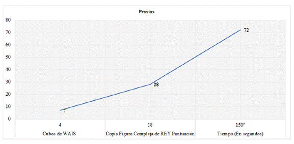 | Práxias | Cubos de WAIS | 20 | 4 | (N: 10 ± 3) |